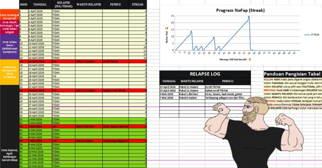 Selama ini ngitung hari NoFap cuma di inget-inget doang? Saatnya TRACK progress lo secara REAL! 📝✅